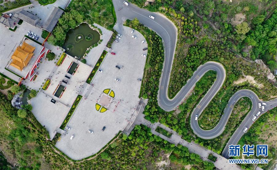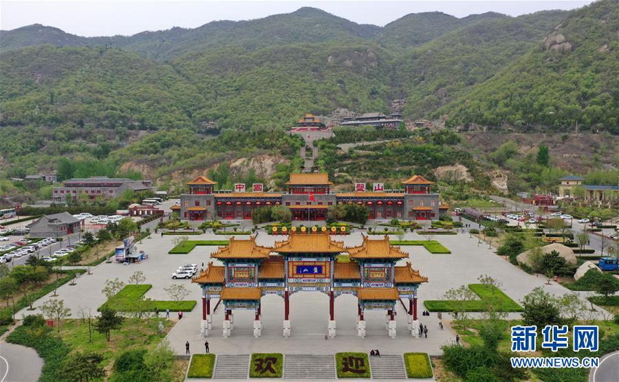 這是4月19日拍攝的盤山風(fēng)景名勝區(qū)正門景觀(無(wú)人機(jī)拍攝)。新華社記者 李然 攝