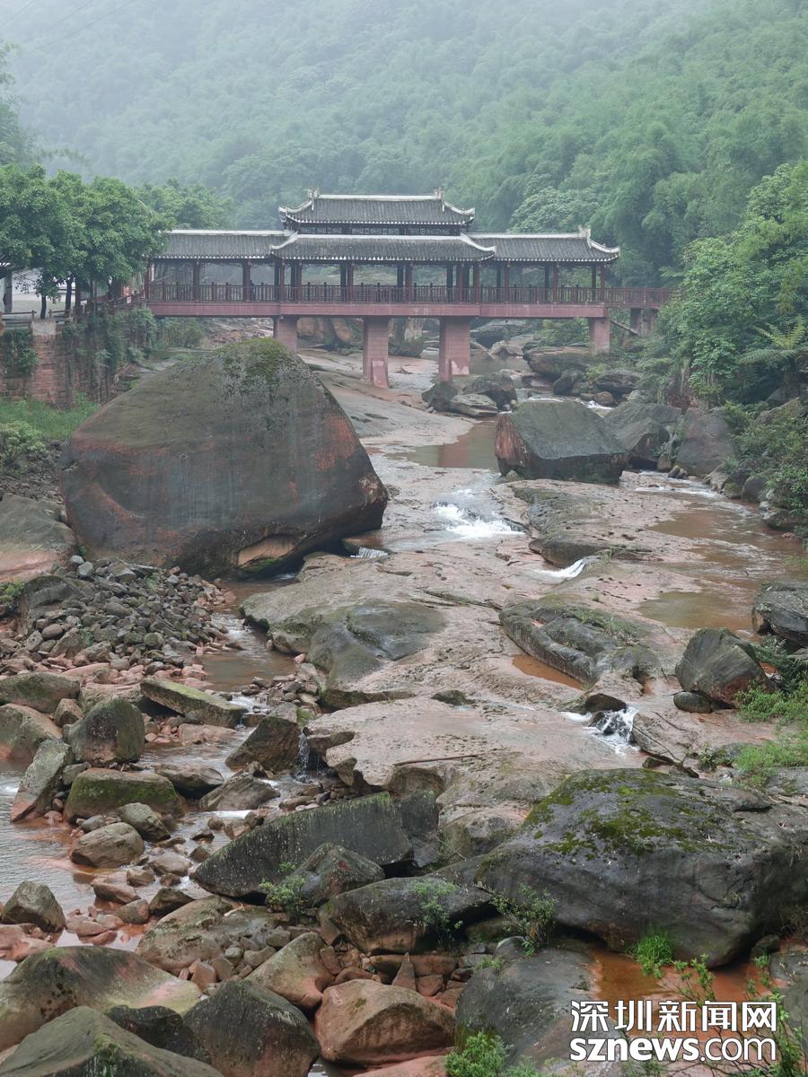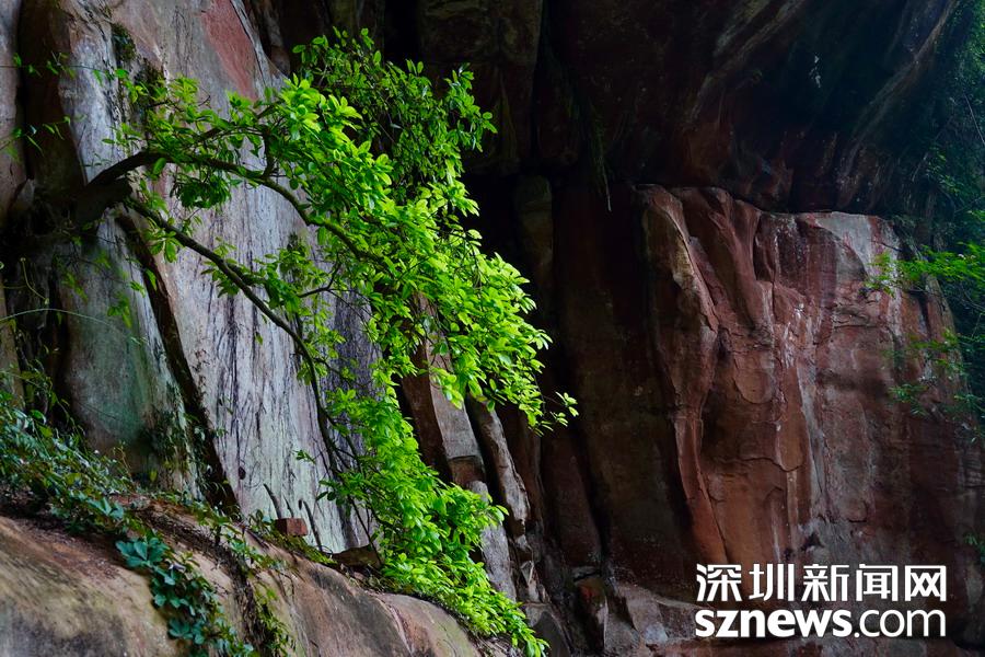 丹霞地貌與大面積古植被和2359 種動(dòng)植物、珍稀瀕危動(dòng)植物共存,是赤水丹霞最獨(dú)特的特征。點(diǎn)綴在原始森林、竹海、桫欏之間,猶如紅寶石鑲嵌在綠洲之中,是世界罕見(jiàn)的綠色丹霞景觀。李仁奇  攝