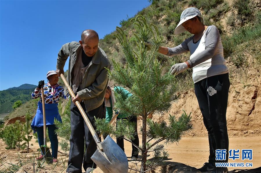 2017年5月26日,嵐縣會(huì)里村村民在呂梁山上種樹。新華社記者 曹陽 攝