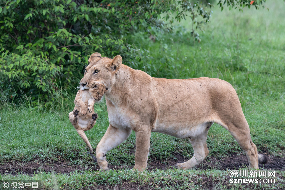 深圳新聞網(wǎng)訊 英國野生動(dòng)物攝影師Paul Goldstein在肯尼亞的馬賽馬拉拍到了一頭小獅子被媽媽教訓(xùn)的場面。畫面中,小獅子正歡快地在草叢穿行,任憑媽媽喚了幾次都無動(dòng)于衷。為了把小獅子帶到安全地帶,母獅咬住小獅子的頸部,霸氣地將其叼在嘴巴里,小獅子一下安分起來,任由母獅帶著活動(dòng)。Paul說:“把人類的情感和表達(dá)方式加給動(dòng)物是不對的,但毫無疑問,這位母親對小獅子的調(diào)皮很不滿意。它喚了幾次,幼崽都拒絕服從它的命令。這個(gè)地方前一晚下了雨,母獅一天的大部分時(shí)間都會(huì)盯緊自己的孩子,避免它們遭遇危險(xiǎn),而一直呆在潮濕的灌木叢中,又是這些小家伙不喜歡的。最終,母獅走向小獅子,直接叼起來放回了灌木叢里?!?span style="text-align: center;">