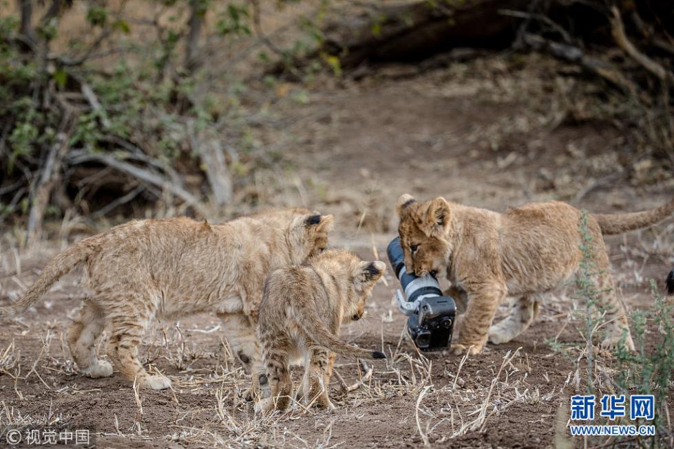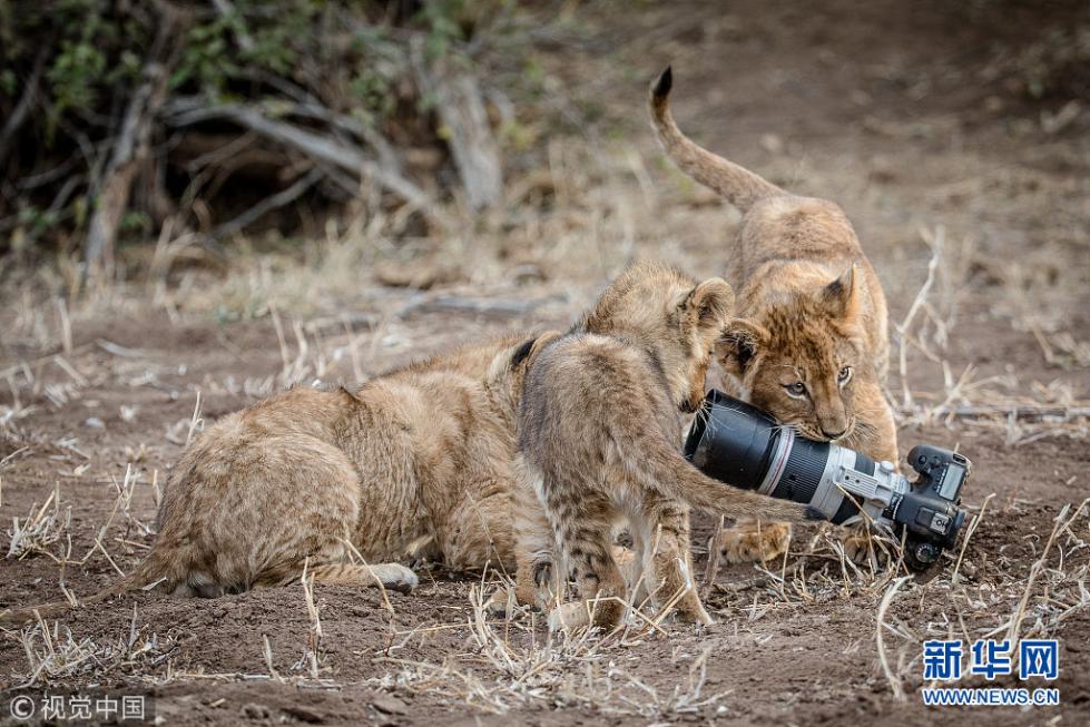 近日,非洲博茨瓦納馬沙圖野生動(dòng)物保護(hù)區(qū)內(nèi)一頭獅子叼起攝影師掉落在地上的相機(jī),之后還將相機(jī)交給小獅子們玩耍,看起來十分好奇,而攝影師非常無奈。現(xiàn)年57歲的叢林探險(xiǎn)家Barbara Jensen Vorster在一輛越野車上為馬沙圖野生動(dòng)物保護(hù)區(qū)的獅群拍照時(shí),相機(jī)不小心掉到了地上。砰的一聲響驚動(dòng)了母獅子,它向攝影師方向移動(dòng),迫使探險(xiǎn)隊(duì)撤退。(圖片來源:視覺中國)