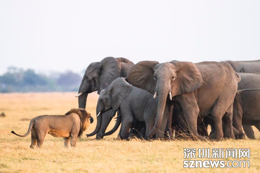 英國攝影師詹姆斯(James Gifford)在博茨瓦納喬貝國家公園拍到一群獅子獵食大象的精彩畫面。在詹姆斯的鏡頭下,一頭母獅跳到了一頭小象的背上想要將其拿下,但僅憑一己之力又不能做到。但當(dāng)母獅的后援抵達(dá)時(shí),象群也趕到了現(xiàn)場(chǎng)。最終,小象回到了象群中獲得庇護(hù),而獅群也不得不悻悻離去。