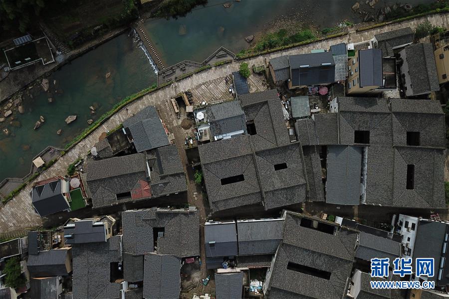 5月26日無人機拍攝的富春江鎮(zhèn)石舍村的古建筑群。 石舍村是浙江省桐廬縣富春江鄉(xiāng)村慢生活體驗區(qū)中的三個村落之一,位置偏僻,依溪而居,風景秀美。近年來,石舍村結(jié)合古建筑保護工作,在清潔、美化村莊的基礎(chǔ)上,對一些廢棄古建筑進行修繕,引入咖啡館、民宿等文化創(chuàng)意類項目,優(yōu)良的生態(tài)環(huán)境和濃郁的文化氛圍吸引大批游客前來體驗,小山村走上了一條發(fā)展美麗經(jīng)濟之路。2018年,石舍村接待游客10萬8千余人次,旅游經(jīng)營凈收入1260余萬元。 新華社記者 黃宗治 攝