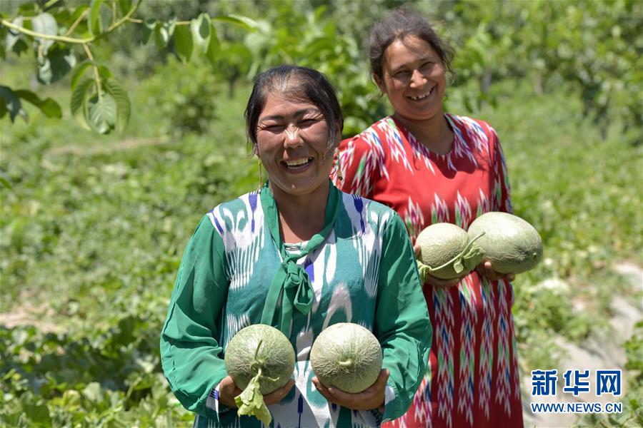 6月23日,新疆喀什地區(qū)巴楚縣的瓜農(nóng)在采摘留香瓜。新華社記者 丁磊 攝