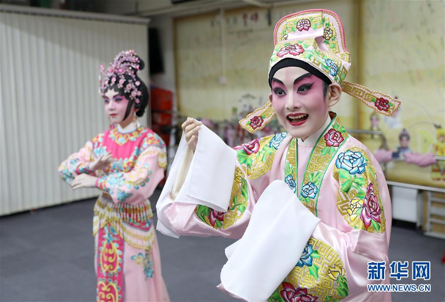 陸瑞徽(左)和利文喆在表演折子戲《艷曲醉周郎》(6月8日攝)。 聲輝粵劇推廣協(xié)會成立于2003年,是香港重要粵劇藝術團體之一,致力于向青少年推廣粵劇。協(xié)會目前有兩個初班,3個中班,一個青少年班。粵劇又稱“廣東大戲”,表演技藝包括“唱做念打”,即唱功、身段、臺詞、武打,主要流行于廣東、廣西和香港、澳門等地區(qū)。2009年,粵劇被列入聯(lián)合國教科文組織人類非物質文化遺產(chǎn)代表作名錄,今年正逢十周年。 新華社記者 吳曉初 攝