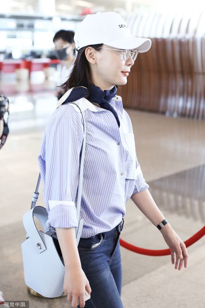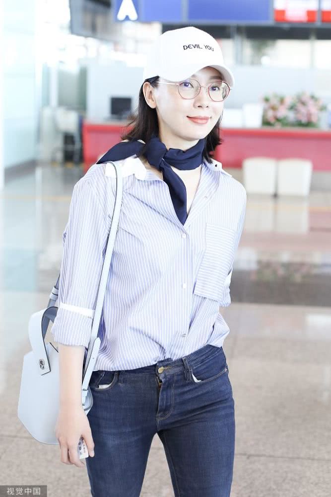 2019年6月30日,北京,陳數(shù)亮相機(jī)場,她身穿條紋襯衫搭配藍(lán)色方巾完美詮釋知性美,簡單造型非常耐看,已經(jīng)42歲的她皮膚也是亮白嫩滑,堪稱凍齡美人了。