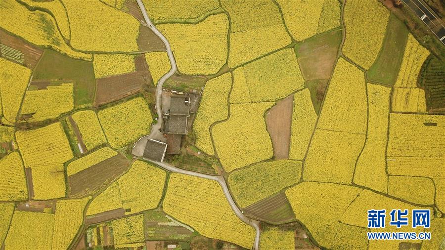 這是黟縣盧村的油菜花田(3月28日無人機拍攝)。近日,安徽省黃山市黟縣的油菜花迎來盛花期。金黃的油菜花與屋舍、道路等形成一幅幅美麗的鄉(xiāng)村畫卷,引人入勝。 新華社記者張端攝