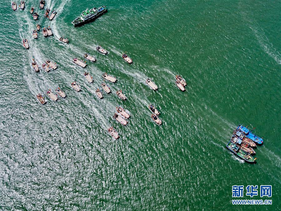 8月3日,在首屆福清開漁節(jié)上,漁船駛向大海(無人機拍攝)。新華社記者姜克紅攝