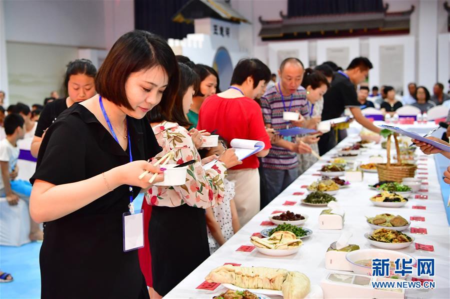 8月3日,在鄉(xiāng)村美食文化大賽現(xiàn)場(chǎng),評(píng)委在對(duì)菜品進(jìn)行評(píng)定。