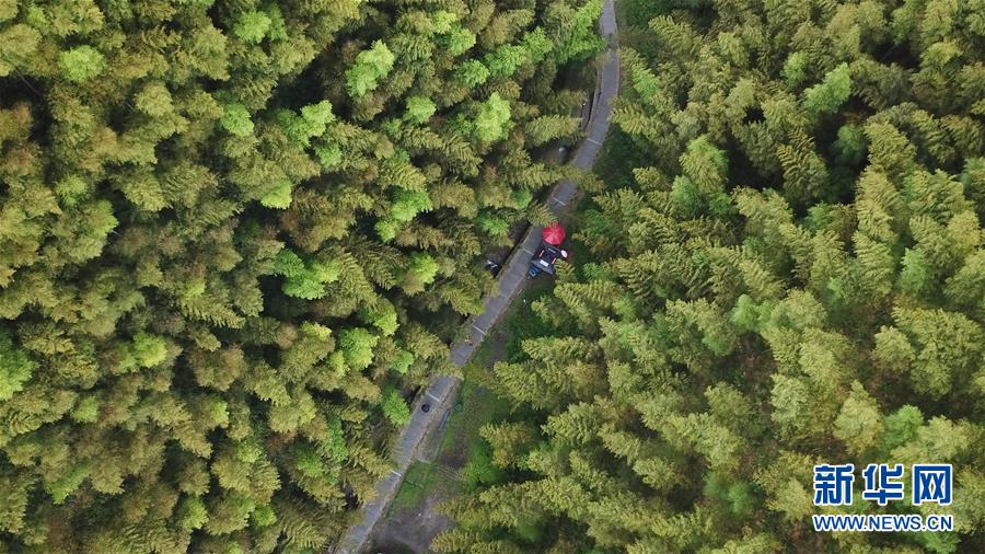 8月3日,游客行走在木坑竹海景區(qū)的小路上(無(wú)人機(jī)拍攝)。夏日,安徽省黃山市黟縣的木坑竹海景區(qū)風(fēng)景優(yōu)美,吸引不少游客前來休閑避暑。新華社記者張端攝