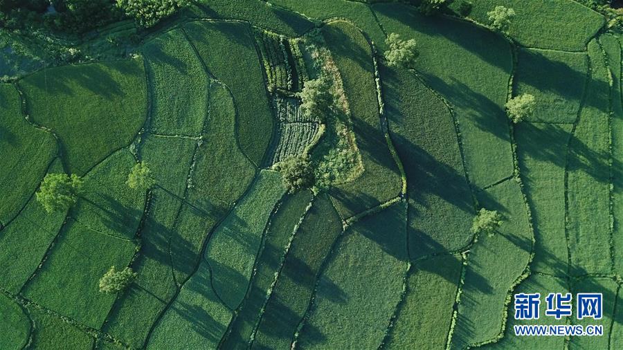 這是8月4日無人機(jī)拍攝的安徽黟縣宏村風(fēng)景區(qū)附近的農(nóng)田。新華社記者 張端 攝