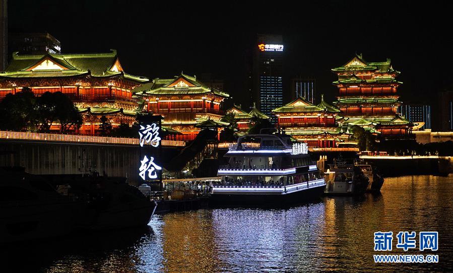 這是江西南昌贛江畔上演的燈光秀(8月6日攝)。 夏季,江西南昌市贛江畔高樓燈光璀璨,五光十色的燈光組成了壯觀的燈光秀,吸引了大批游客。據(jù)介紹,近年來,南昌為發(fā)展“夜經(jīng)濟”,著力打造夜游項目,夜游項目以滕王閣為核心,借助贛江兩岸景觀照明,結(jié)合同步音效,打造立體、動態(tài)、富有江西元素的風(fēng)景,讓游客感受夜景的美麗和江西的歷史文化。 新華社記者 萬象 攝