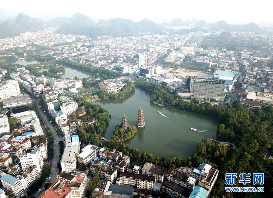 這是廣西桂林市的城市景觀(10月17日無人機(jī)拍攝)。 新華社記者 周華 攝