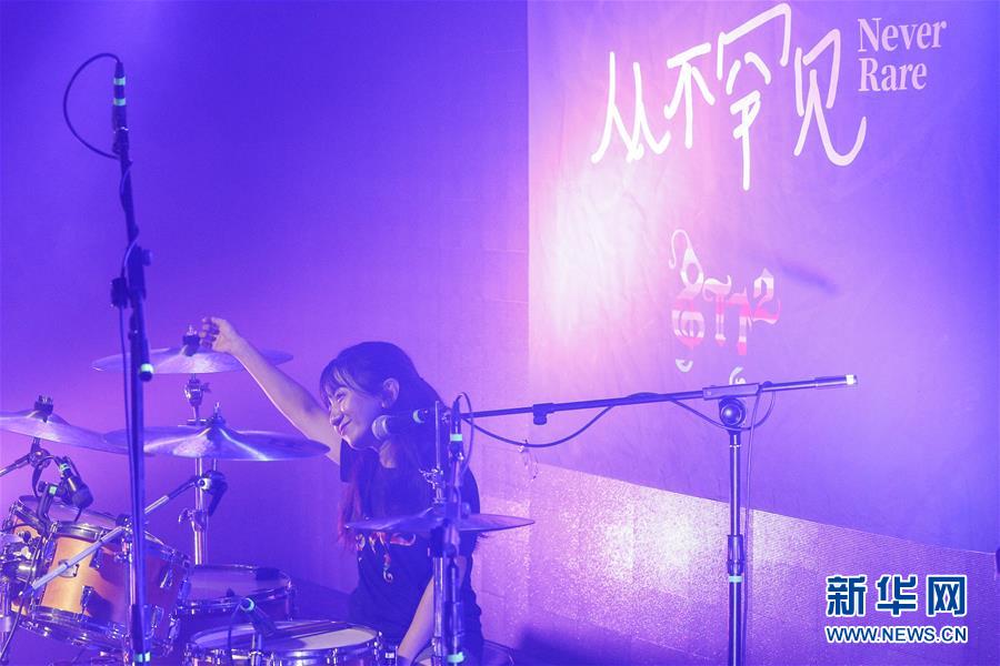8月14日,8772樂隊(duì)發(fā)起人、隊(duì)長王奕鷗在演唱會上表演。新華社記者張玉薇攝