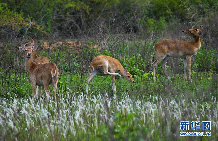 坡鹿在海南大田國家級自然保護區(qū)內(nèi)休息(2018年4月29日攝)。新華社記者 楊冠宇 攝