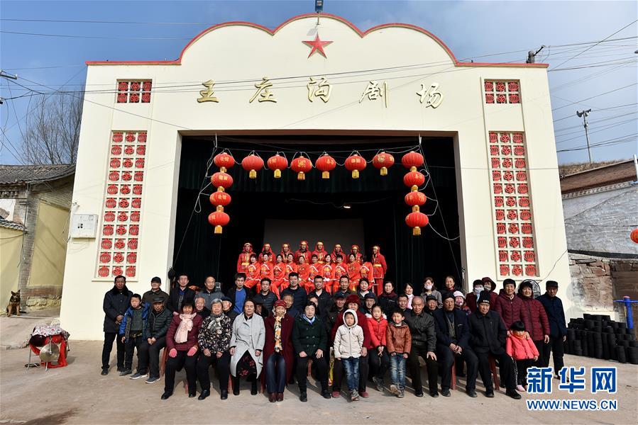 武鄉(xiāng)縣大有鄉(xiāng)王莊溝村的部分村民在劇場合影(2月19日攝)。  新華社記者 詹彥 攝
