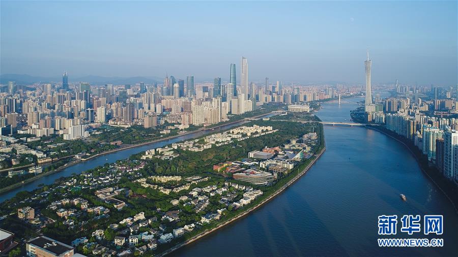 廣州二沙島綠意盎然(2017年12月1日無人機拍攝)。 新華社記者 劉大偉 攝
