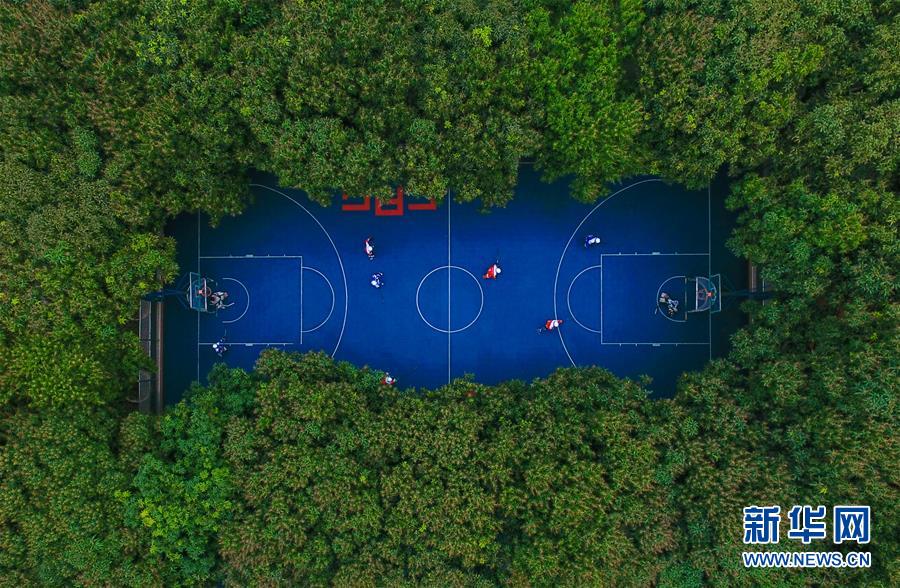 這是被綠蔭環(huán)繞的廣州第四十一中學(xué)運動場(2017年3月16日無人機拍攝)。 新華社記者 劉大偉 攝