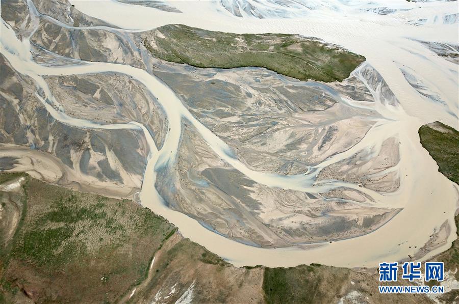 甘肅省酒泉市阿克塞哈薩克族自治縣境內(nèi)的大哈爾騰河(8月22日無人機拍攝)。新華社記者 馬寧 攝