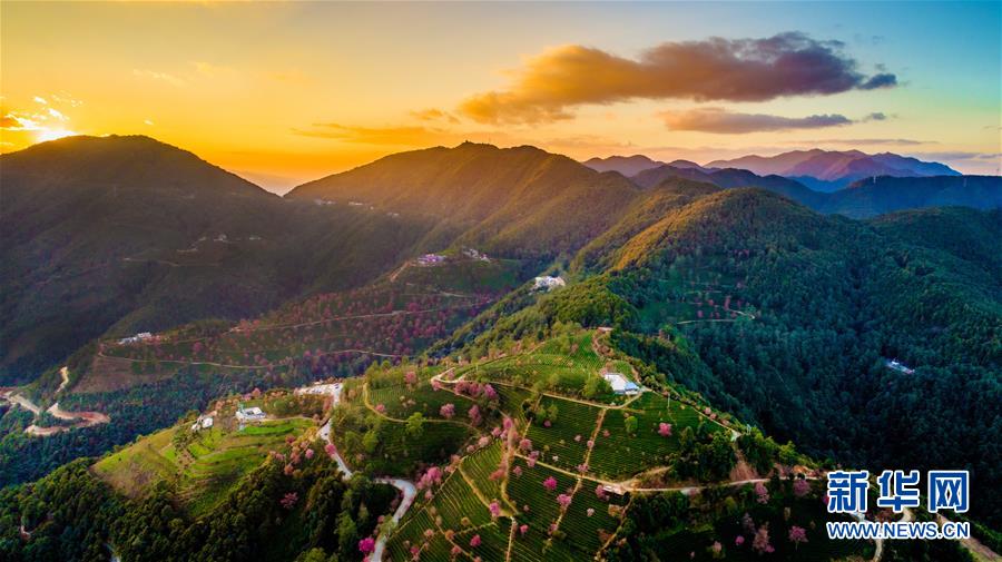 這是夕陽時分的云南南澗彝族自治縣無量山櫻花谷一景(2017年12月16日無人機拍攝)。 新華社記者胡超攝