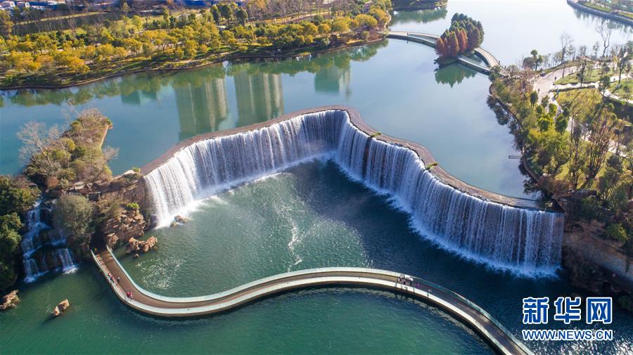 云南昆明瀑布公園一景(1月5日無人機拍攝)。 新華社記者胡超攝