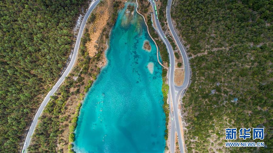 這是云南麗江玉龍雪山藍(lán)月谷景色(4月21日無人機拍攝)。 新華社記者胡超攝