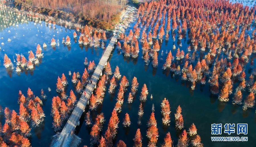 云南昆明水杉濕地冬日一景(1月5日無人機拍攝)。 新華社記者 秦晴 攝