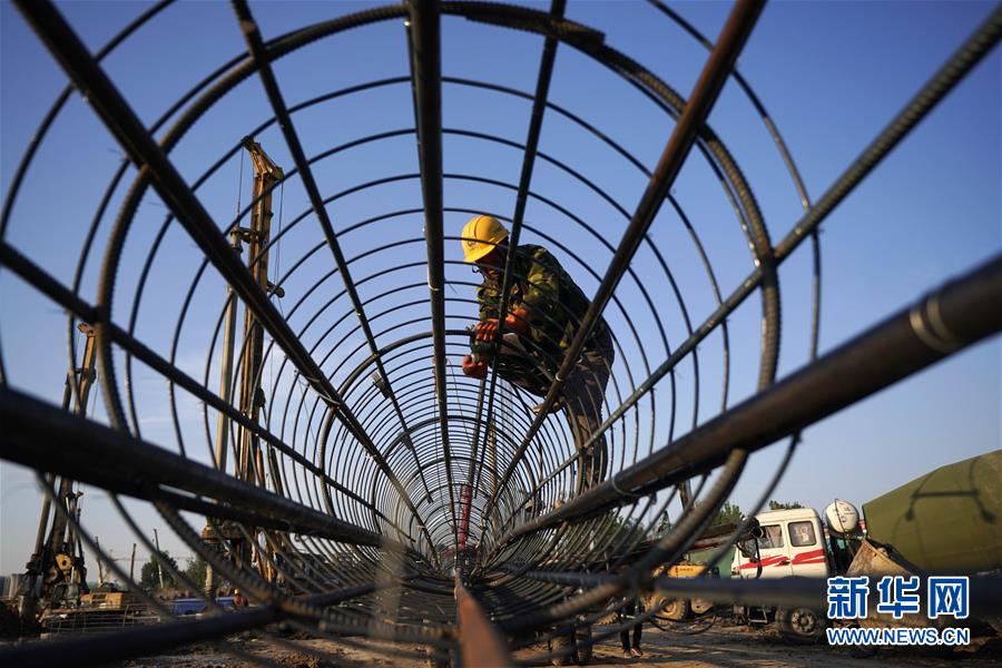 8月27日凌晨,施工人員在進(jìn)行橋梁轉(zhuǎn)體施工。 新華社記者 楊世堯 攝