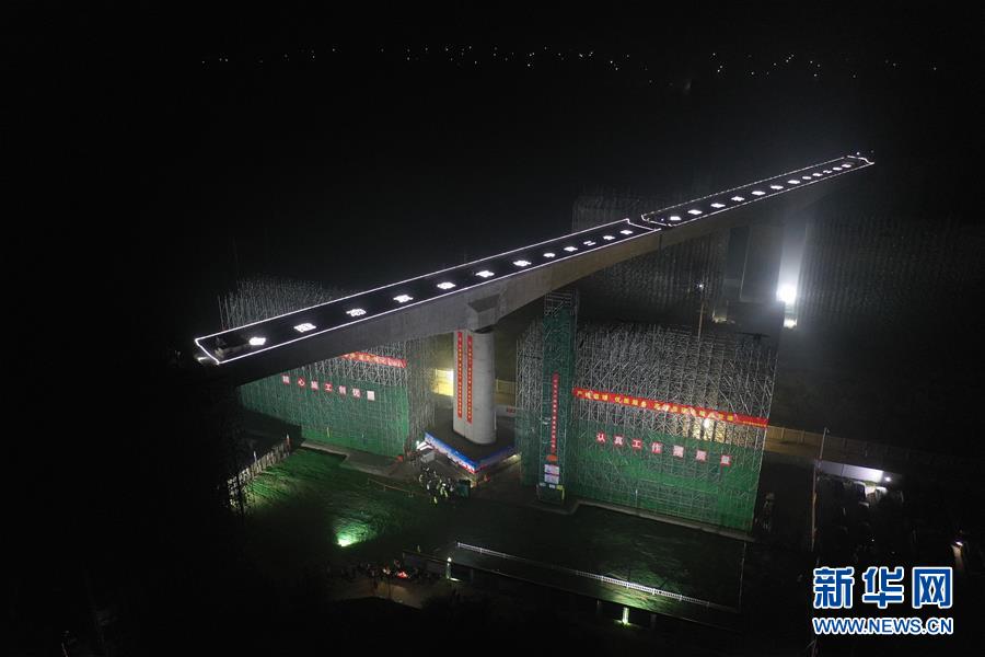 這是8月27日凌晨無(wú)人機(jī)拍攝的轉(zhuǎn)體完成的橋梁。 新華社記者 邢廣利 攝