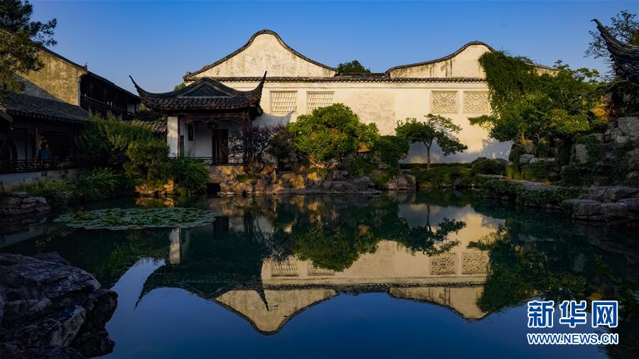 這是5月22日拍攝的夕陽(yáng)下的蘇州網(wǎng)師園。  新華社記者 沈伯韓 攝