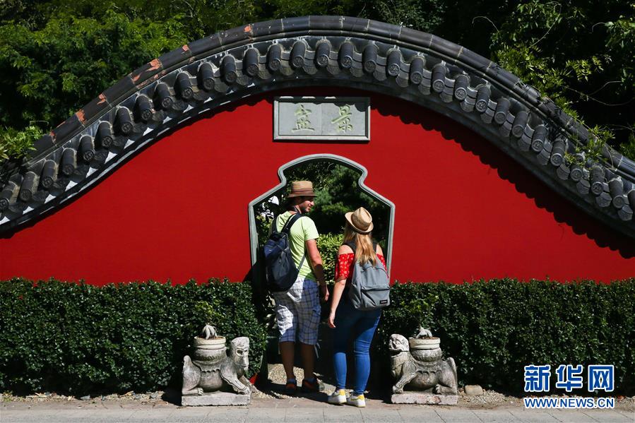 8月24日,在比利時(shí)布呂熱萊特市,游客參觀天堂動(dòng)物園的“中國(guó)園”中的一處長(zhǎng)廊。新華社記者 鄭煥松 攝