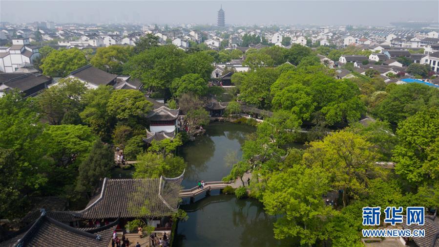 4月17日無人機拍攝的蘇州拙政園。 新華社記者李響攝