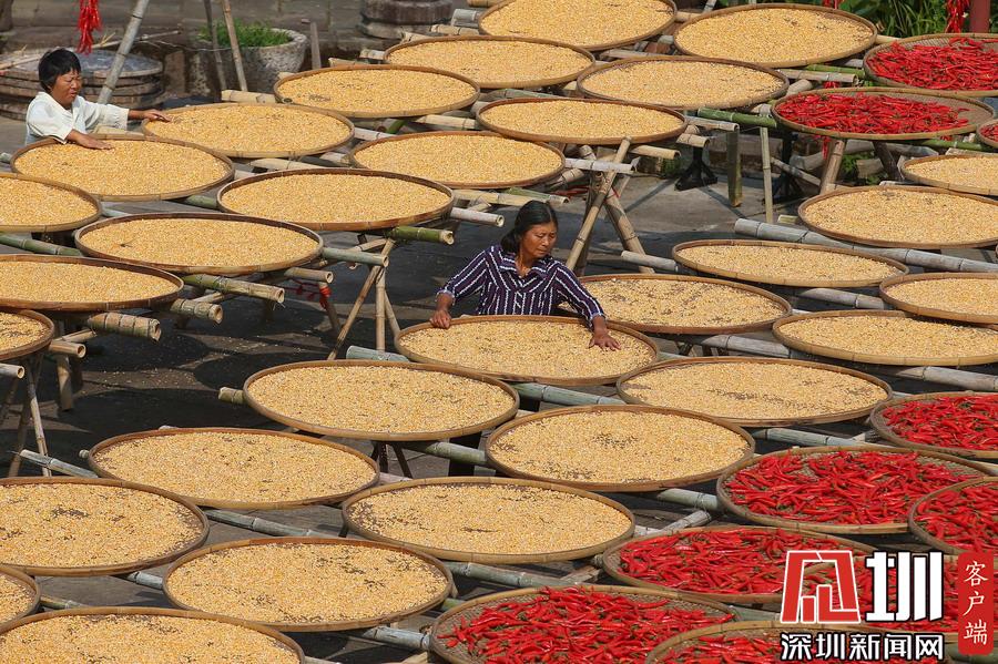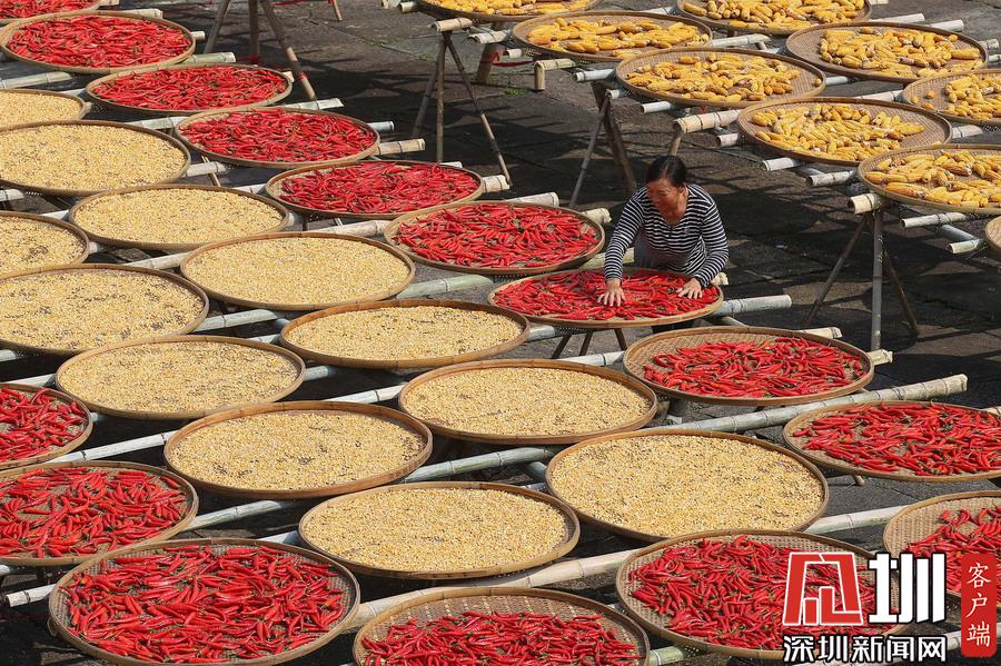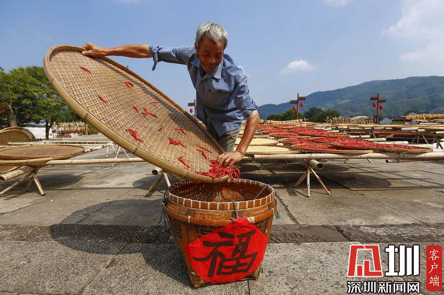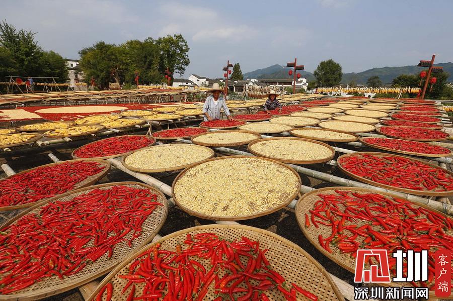 當(dāng)日立秋節(jié)氣,江西婺源縣篁嶺古村的農(nóng)作物普遍豐收,村民們又迎來了一年一度的“曬秋”季。
