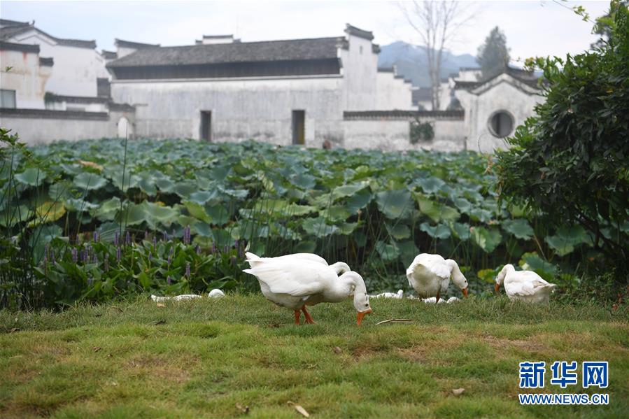 這是呈坎村內(nèi)的荷塘(8月28日攝)。新華社記者劉軍喜攝