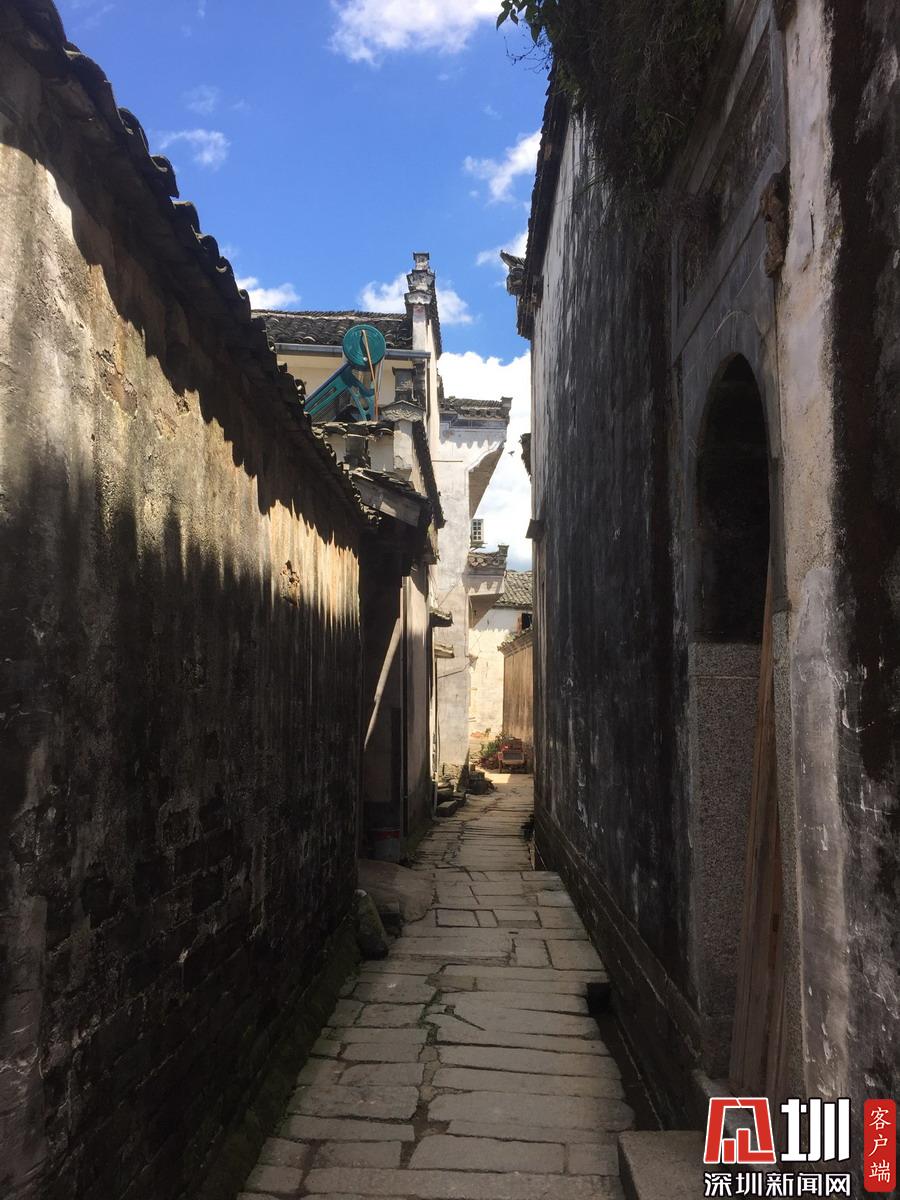 整個村子有多達(dá)99條巷子,簡直是一座迷宮。巷道都用麻石夾雜碎瓦片鋪成,顯得很古樸。墻的高度也恰到好處,在炎熱的夏天,走在巷子里也不會曬著太陽。李曉蕾攝