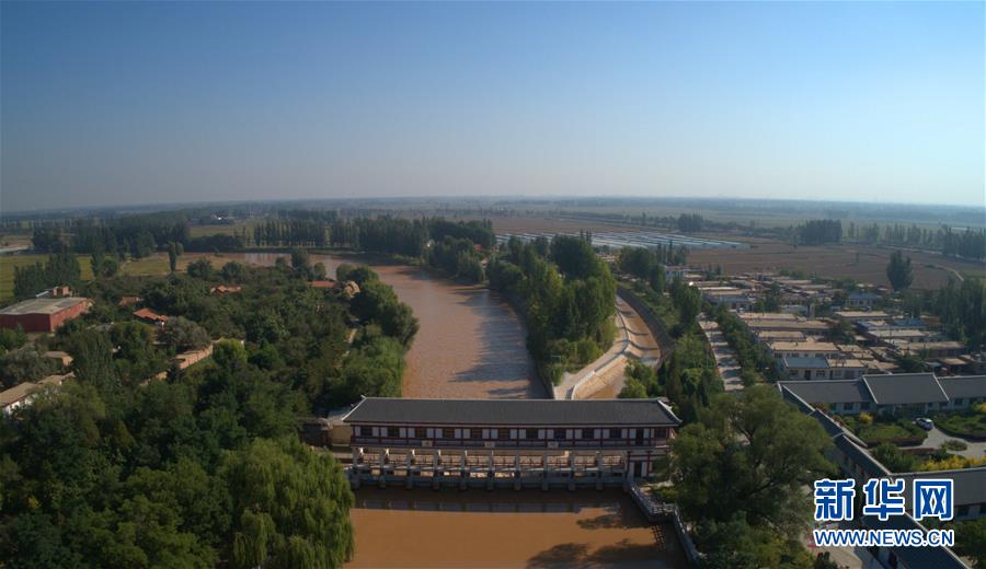 寧夏引黃古灌區(qū)唐正閘。2017年10月寧夏引黃古灌區(qū)入選世界灌溉工程遺產(chǎn),這也是黃河干流上的首個(gè)世界灌溉工程遺產(chǎn)(9月1日無(wú)人機(jī)拍攝)。新華社記者劉詩(shī)平攝