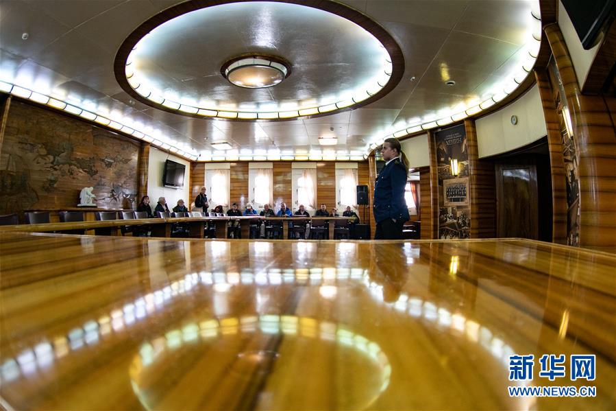 9月14日,在俄羅斯摩爾曼斯克,游客在核動(dòng)力破冰船“列寧”號(hào)內(nèi)部聆聽工作人員講解。  新華社記者 白雪騏 攝
