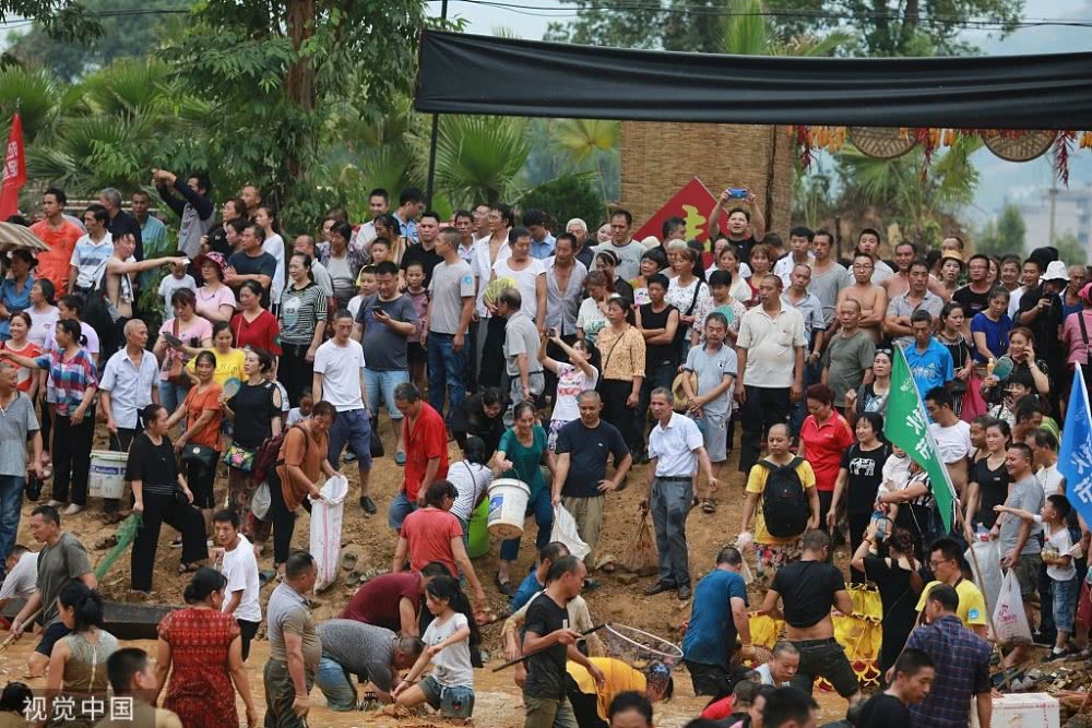2019年9月7日,重慶,涪陵區(qū)曬秋捉魚(yú)活動(dòng)在紅酒小鎮(zhèn)舉行,現(xiàn)場(chǎng)上演搶魚(yú)“大戰(zhàn)”。