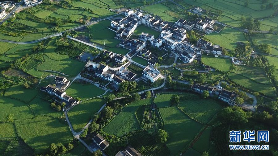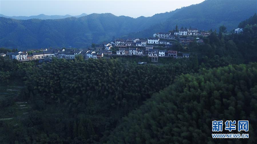 晨曦中的木梨硔村景色(9月18日無人機(jī)拍攝)。9月18日清晨,地處皖南山區(qū)的安徽省黃山市休寧縣木梨硔村沐浴在晨曦之中,靜謐祥和。新華社記者張端攝