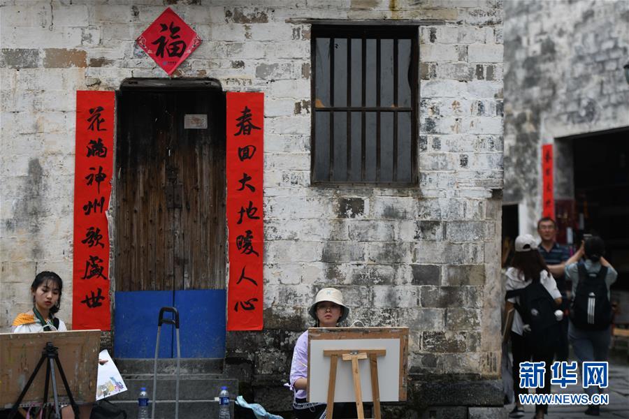 4月24日,繪畫愛好者在西遞風(fēng)景區(qū)寫生。新華社記者任鵬飛攝