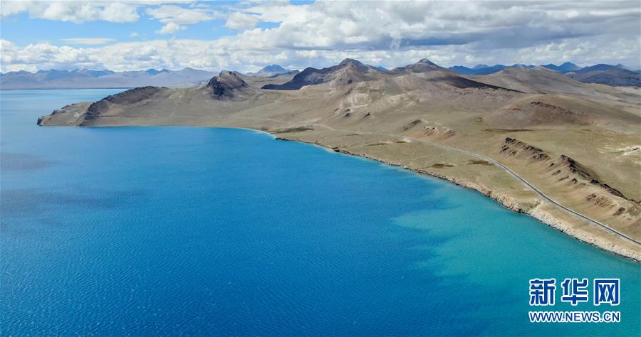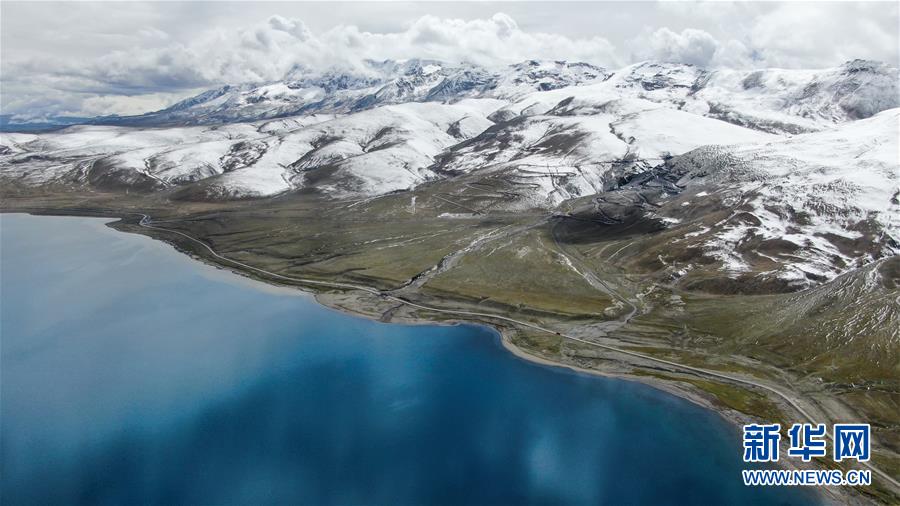 8月31日無人機(jī)拍攝的羊卓雍錯(cuò)及邊上的307省道。新華社記者晉美多吉攝