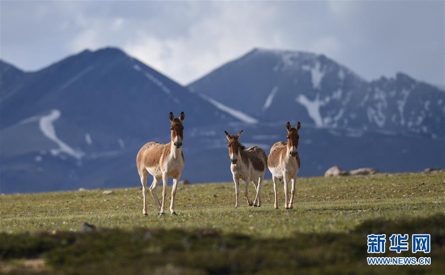 西藏札達(dá)縣香孜鄉(xiāng)熱布加林牧場上的藏野驢(7月29日攝)。新華社記者晉美多吉攝