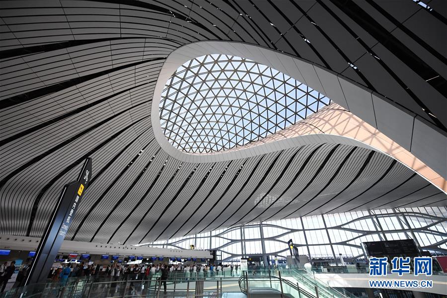 9月25日拍攝的北京大興國際機(jī)場航站樓內(nèi)部。新華社記者張晨霖攝