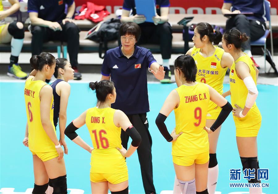 9月23日,中國隊主教練郎平(中)在比賽間隙指導球員。當日,在日本札幌舉行的2019年女排世界杯賽第二階段A組循環(huán)賽中,中國隊以3比0戰(zhàn)勝美國隊。新華社記者杜瀟逸攝