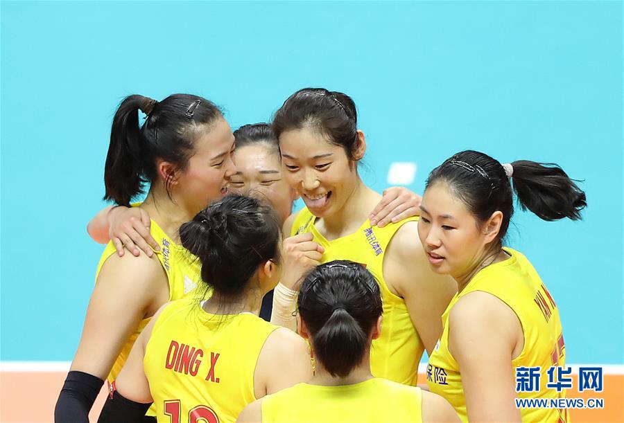 9月23日,中國(guó)隊(duì)球員朱婷(中)在得分后慶祝。當(dāng)日,在日本札幌舉行的2019年女排世界杯賽第二階段A組循環(huán)賽中,中國(guó)隊(duì)以3比0戰(zhàn)勝美國(guó)隊(duì)。新華社記者杜瀟逸攝