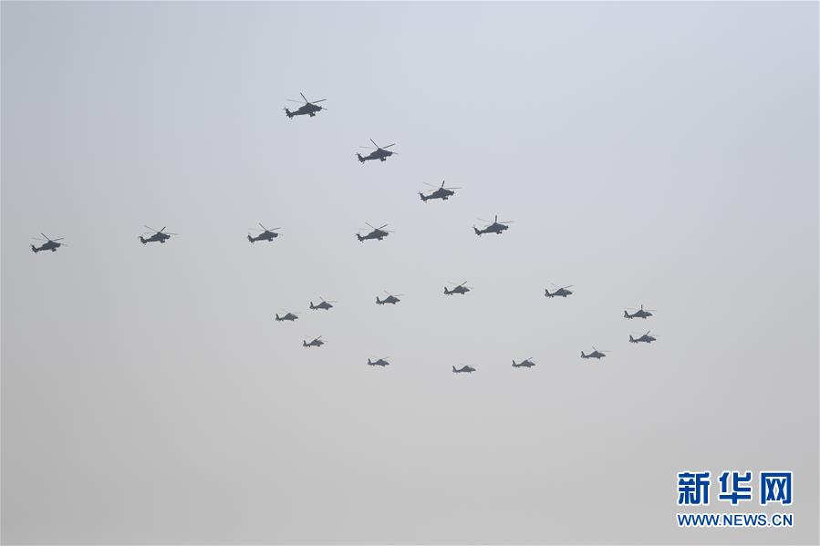 10月1日上午,慶祝中華人民共和國成立70周年大會(huì)在北京天安門廣場隆重舉行。這是20架直升機(jī)在空中組成“70”字樣。新華社記者王凱攝