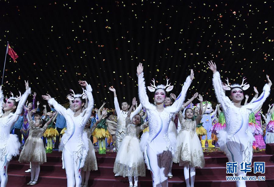 10月9日,演員在節(jié)目“綠野漫游”中表演。當(dāng)日,2019年中國北京世界園藝博覽會閉幕式在北京舉行。新華社記者翟健嵐攝