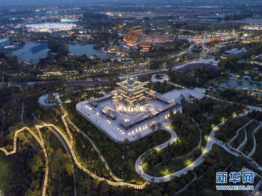 北京世園會園區(qū)內(nèi)的永寧閣(10月7日無人機拍攝)。新華社記者才揚攝