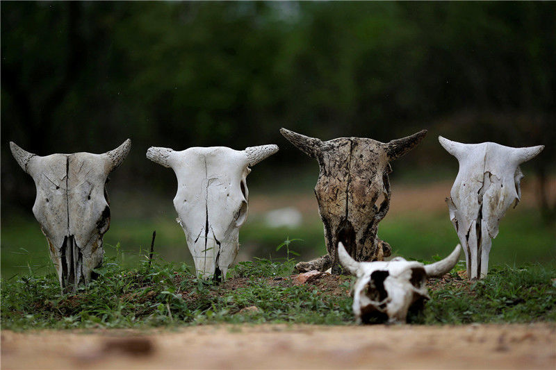 當(dāng)?shù)貢r(shí)間2017年2月11日,巴西帕拉伊巴,路上牛的頭骨。