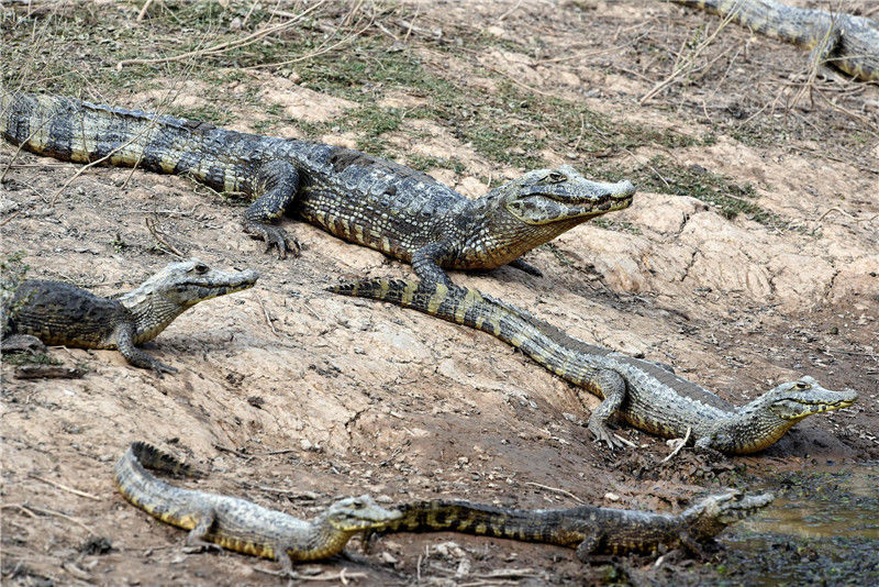 當(dāng)?shù)貢r(shí)間2016年6月24日,巴拉圭General Diaz,巴拉圭與阿根廷邊境遭遇嚴(yán)重干旱,皮科馬約河河水枯竭,凱門鱷在水塘內(nèi)。